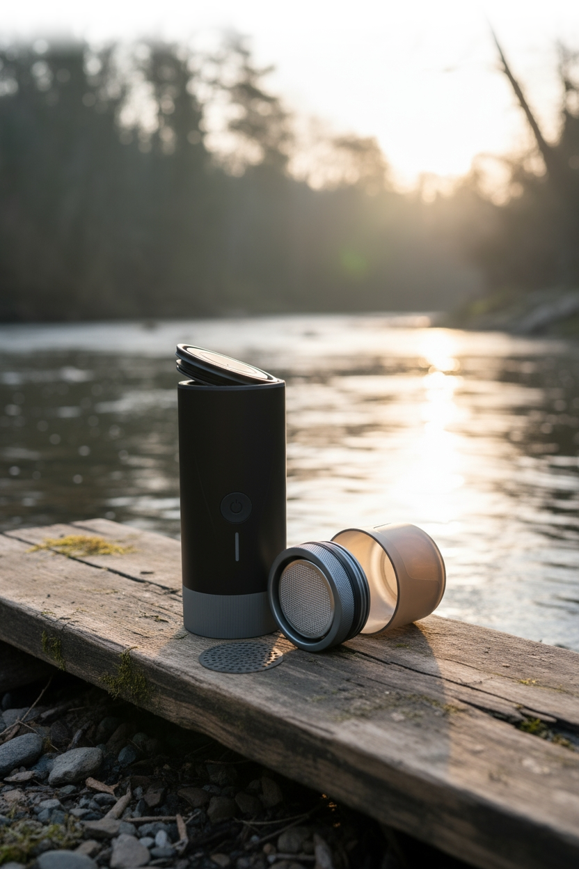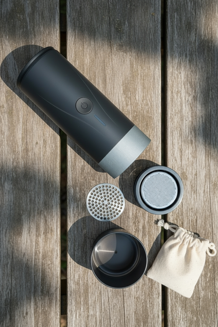 No outlet, no kettle. Real 51 mm espresso on the trail.